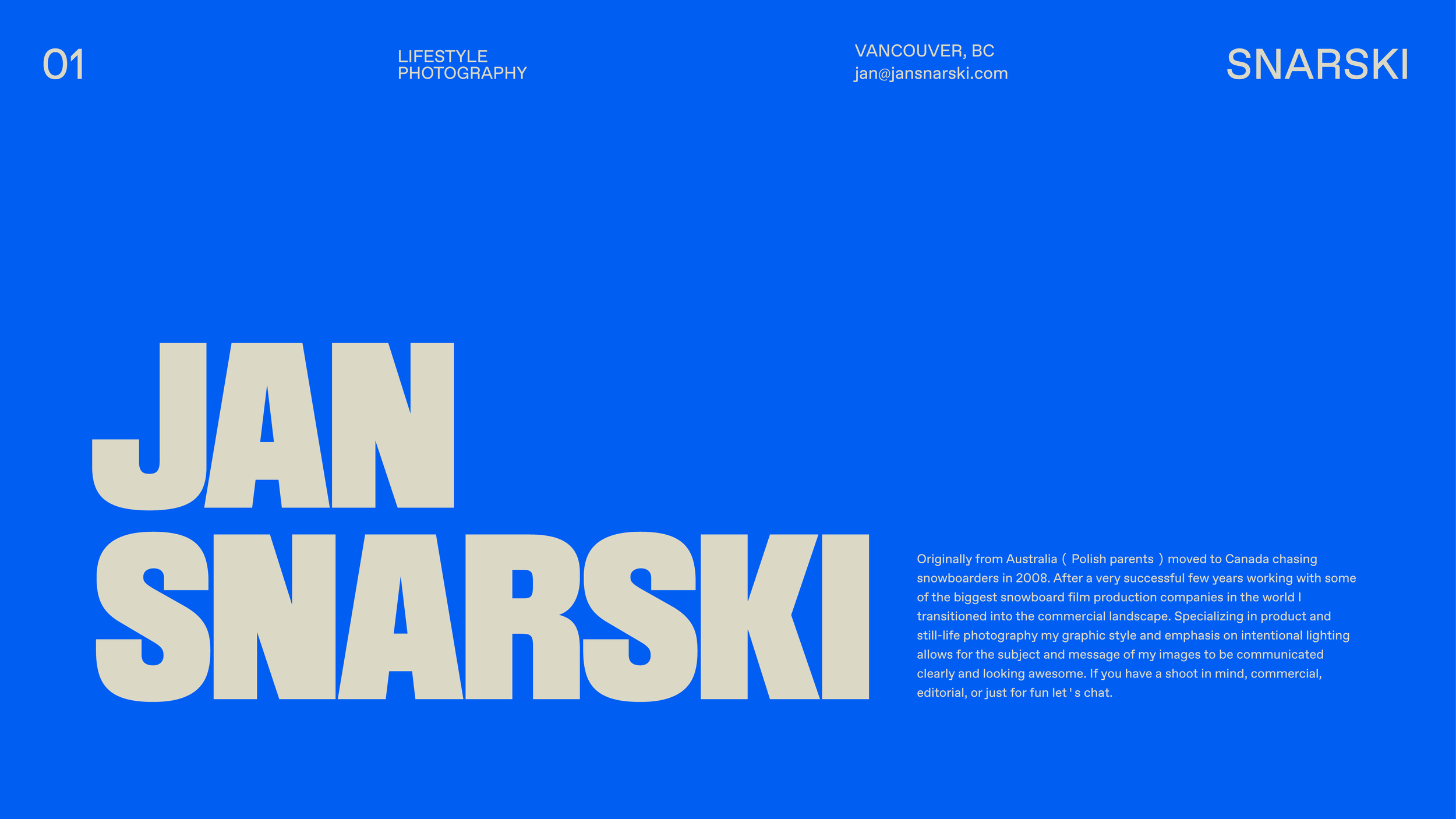 Meet Jan, an Aussie-born, Poland-rooted creative who landed in Canada chasing snow. With roots in world-class snowboard film production and a sharp eye honed on the slopes, Jan now specializes in bold, and vibrant graphic commercial photography. The goal was to help bring Jan’s vibrant, poppy, and bold style into a clean and character driven brand identity.